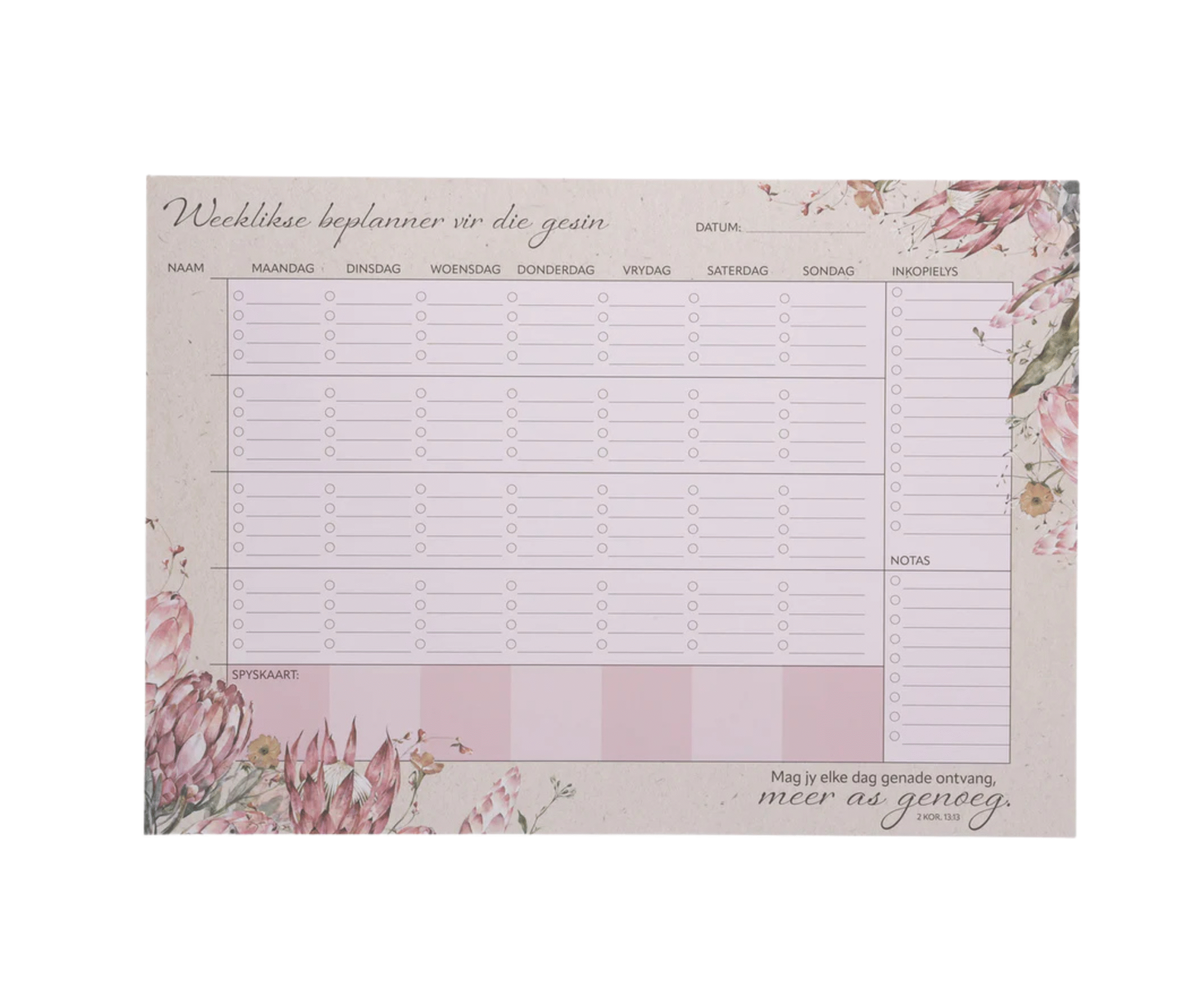 A3 Weeklikse tafel beplanner – Mag Jy Elke Dag Genade Ontvang, Meer As Genoeg Afrikaans
